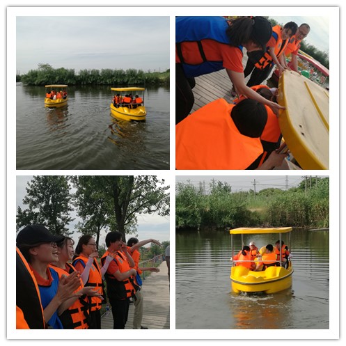进入脚踏船接力环节后,队员们更是卯足干劲、奋勇争先。每个小组分成两个小分队,依次上场进行脚踏船接力赛,船上的队员用尽力气想为团队争赢,替补队员则在岸上做安全防护,并为船员们呐喊助威,大家都竭尽全力,气氛高涨更胜之前!